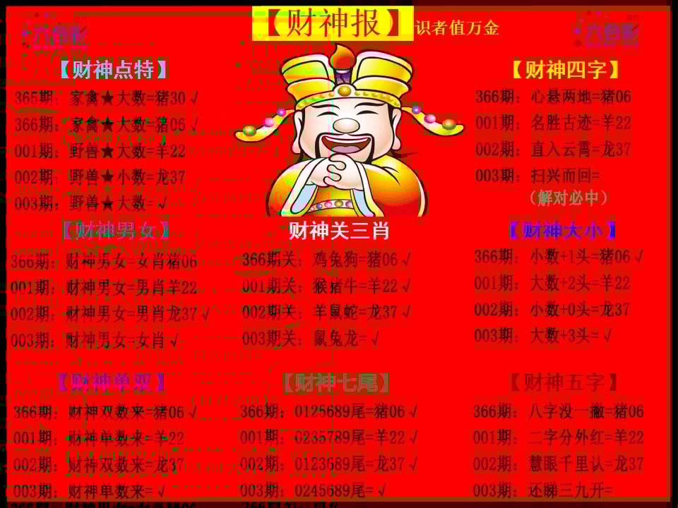 003期:参赛贴『神彩盖地』公式六肖 就是您六合淘金
