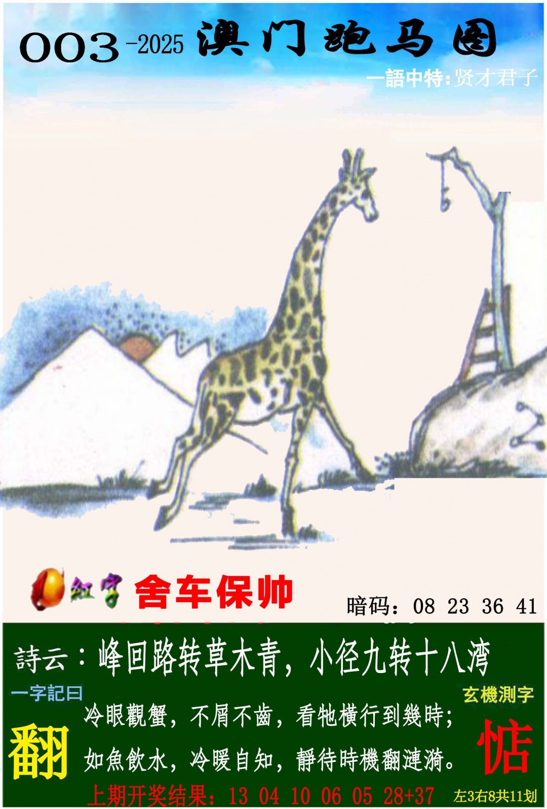 003期:参赛帖『六合翻身』 六肖公式 🌴 迎接美好的每一天